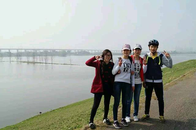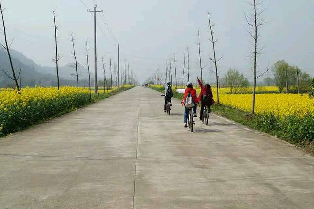 之前和三个小伙伴约好,骑行响水涧。我们约定一早8:00钟在宿舍楼下集合。去取来山地车之后即出发了。之前上网查了路线,不是比较宽阔的柏油大路,有的甚至要穿过村庄,穿过铁道,路况还是挺复杂的。所以说网上的东西还是比较不靠谱……沿着花津南路一直骑,沿路的油菜花田的花已经开了,只是零零散散的,却也是带着春意的美。之后的时光大多是在路上的。有一段经过大桥。水天一色,就着连排的柏树自然画出的边际线,河岸边的牛儿在过着自己的生活,悠然自得。这一瞬,生活的快节奏被打破,留在心底的感觉是一汪平静的水面上丢下了一颗小小的石子。水花甚至都没来得及溅起来,那一层层的水波就已充满整个心灵。在朝阳下,我们继续启程。背后一阵骚动,稍一偏头,只见一辆辆自行车从身边刷刷地疾驰而过。这是我们学校的自行车协会,他们的目的地也是响水涧,所以理所当然的就抱团啦。之后的一段段路,都是村村通。在村子里,在田野边。一路上的浓醇的农家味道四散飘来。心情说不清楚,心旷神怡吧。因为空气是新的,天是蓝的,花是大片大片的,人是被这些种种洗净了的。重要的一段登场了。繁昌水堤。一路的美景,这美并不艳丽,但是平静的让人成谜,是种淡然的自在的田园式的美。白水,黄牛,黑狗,灰绿色的草铺在地上,就这么地活着,没有任何东西能够打破。走到大路上沿着公交站牌一直起的话,就离目的地不远了。接近之后,油菜花是那种渐进式地印入眼帘,越来越多,越来越壮观。随着响水涧景区的开发,也有越来越多的驴友们来到这个地方。花开的很烈,能够看到忙碌的蜜蜂在花上驻留,飞走。天气是晴朗的,来游的人也很多。大多是自助游。开着私家车来的。在景区的脚底把车停下,徒步走上去。一路上经过一个小小瀑布,还有从山上往下眺望的美丽乡村,梯田式的油菜花不多,不似婺源那样,却是独有响水涧自己的美。在山上又是大片的水库,水波粼粼,风吹在脸上,身上,特别地舒服。静了,累了,又充满力量了。就是这样的感受。下山和回家的路相对回来时要更快,更加顺利。背后印着夕阳的余晖,前方是滚动的轮轴和一路的欢声笑语。