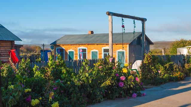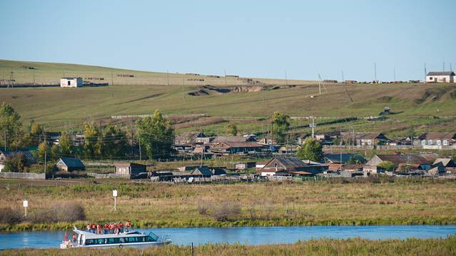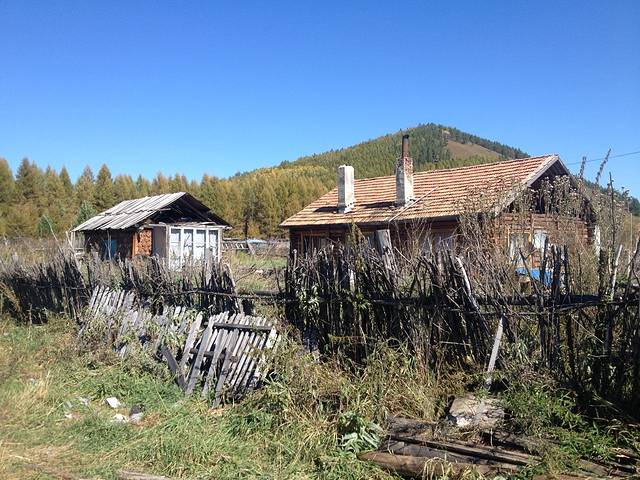 到室韦了,因为淡季,镇子看起来有点凄凉。我们直奔河边,但身后跟着4、5位大妈劝我们下去骑马。。。神烦! 这张是额尔古纳界河对面的俄罗斯村庄,离我们可真是近啊~