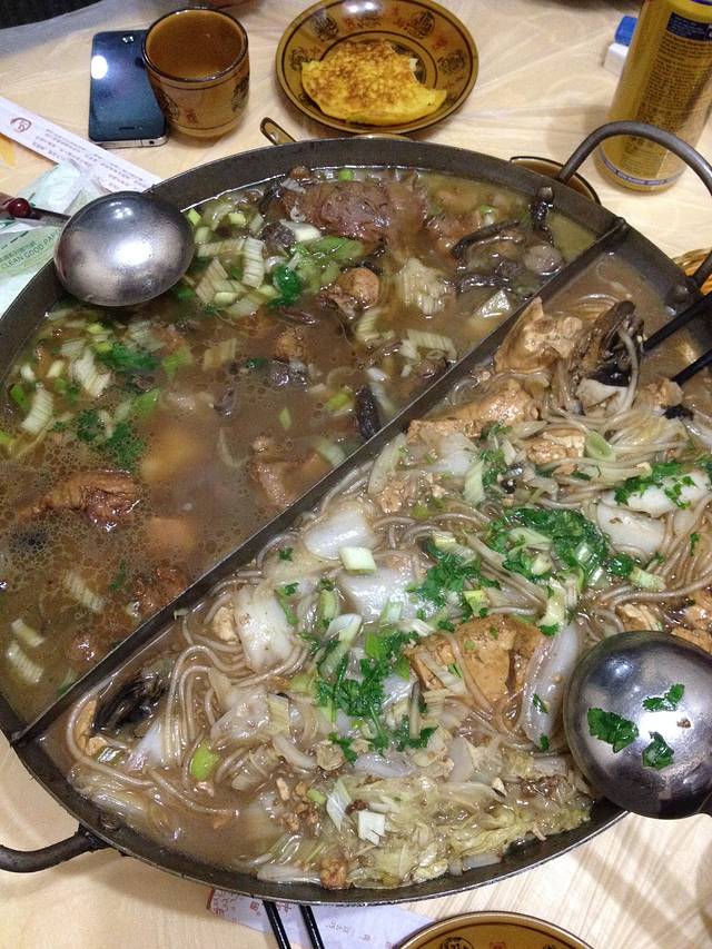 左半锅是苯鸡炖蘑菇,右半锅是冷水鲇鱼炖豆腐白菜粉条,量超大,四个人都吃不了,最重要的是味道好极了,推荐!!!
