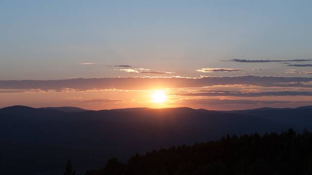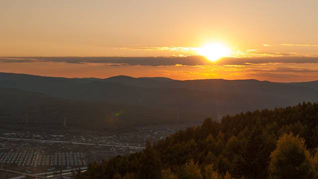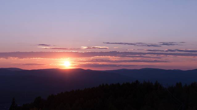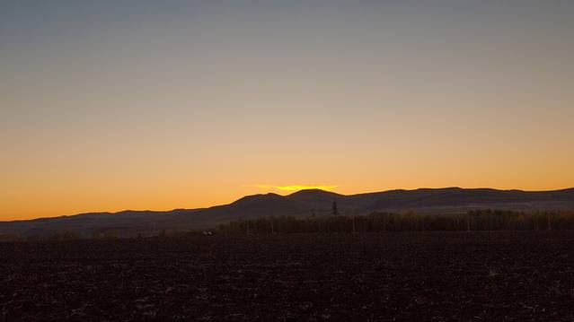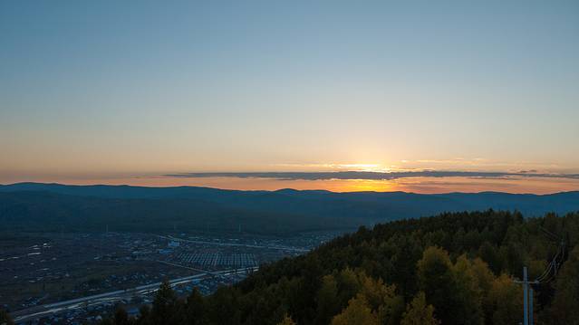 在这儿等着太阳下山,位置选的真不太好。在镇子入口的地方有个山坡,我们从室韦开过来的时候,发现好多车停在路边,车上没人,估计都爬到山上拍日落了去了,不过我懒得再开回去了...