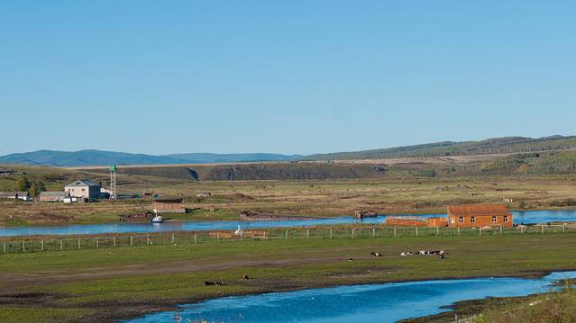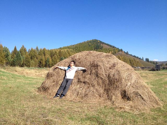 寻找路线大致如下:从主道先拐进鄂温克民族村,穿过村子继续沿着车印走,过了两座桥以后右拐下道,依旧顺着草原上的车印走,几公里以后就能看到河在右手边,左手边抬头能看到两个山头上分别有一个敖包,坡下有上坡的车印,登上坡顶看到的莫日格勒河超级超级赞。坡下是金帐汗景区,但是我们去的时候人家已经撤走了。实在找不到就多打听打听吧,那里的村民很热心的~~