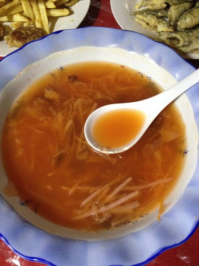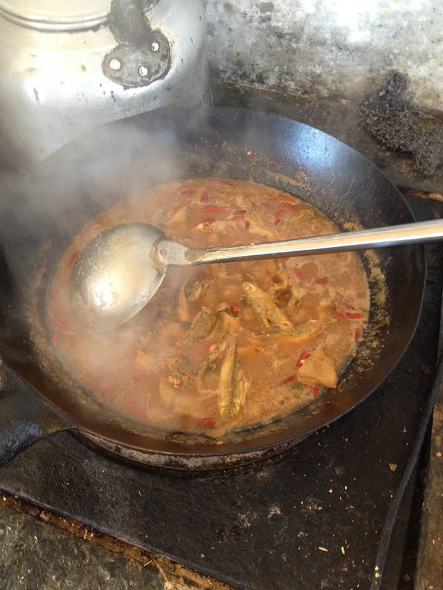 拍日落的时候又遇到那位包车师傅,问他这镇子哪有好吃的?他推荐这家“农家饭一锅出”