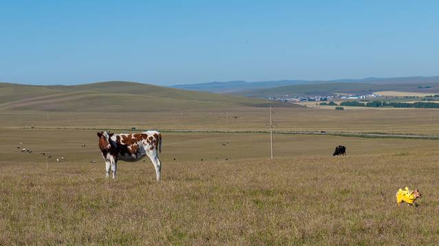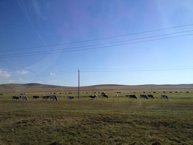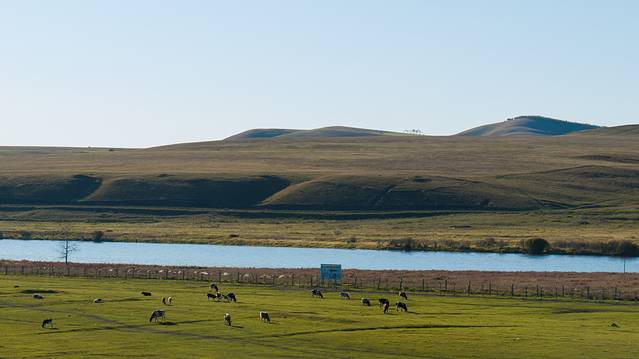 通往鄂温克民族村的道边,这边的牛群、羊群数量都特别多呢~~