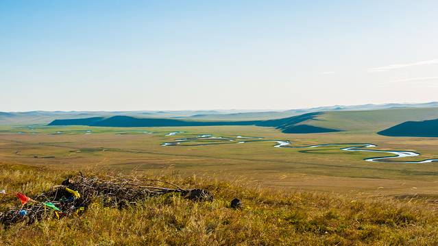 还是在走错的山头上,都没有车印。。。这座山的两侧都有河,而且都是及其弯曲的,我们当时还打电话问那位包车师傅,怎么会有两条莫日格勒河呢?orz