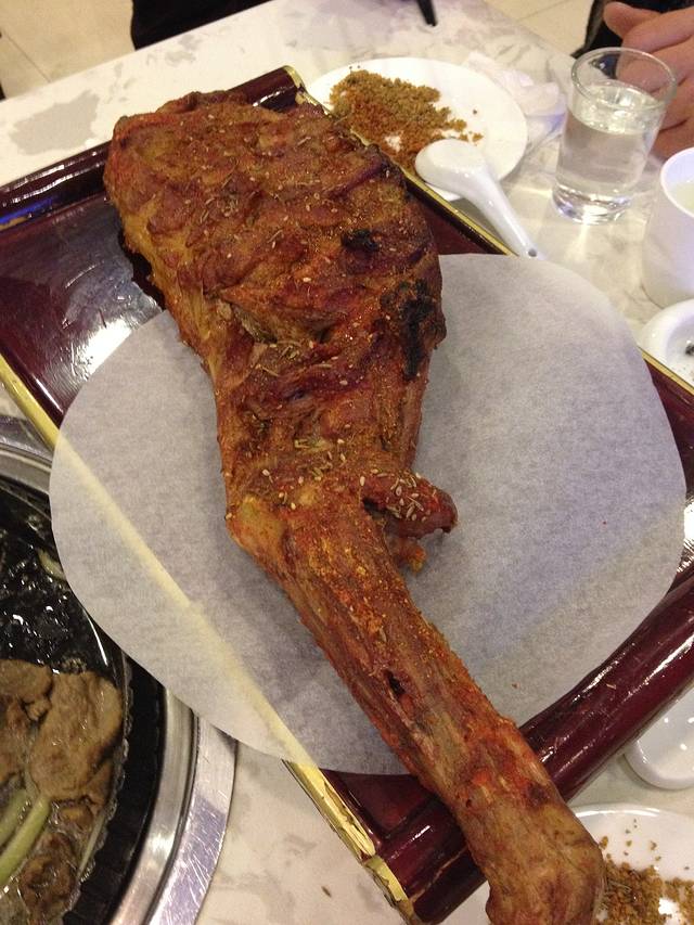 烤羊腿,不是很大,不要担心吃不了。手机里有他们啃羊腿的不雅照,就不po上来啦~~嘻嘻