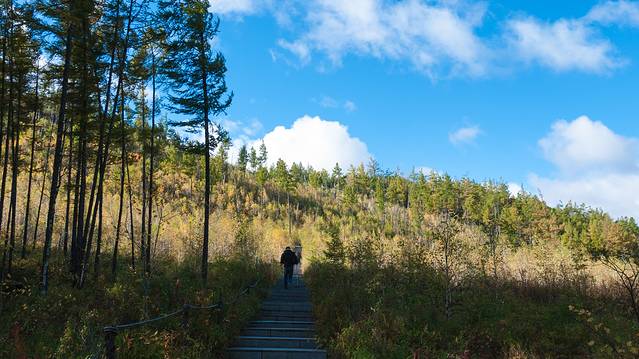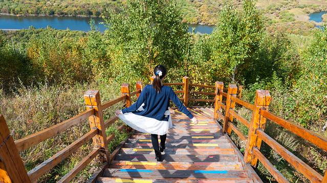 湿地景区就在额尔古纳市旁边,很近。门票65,学生票30,观光车15,游览时间约1.5小时。因为一直都是楼梯,所以体力不好的我走了好久。