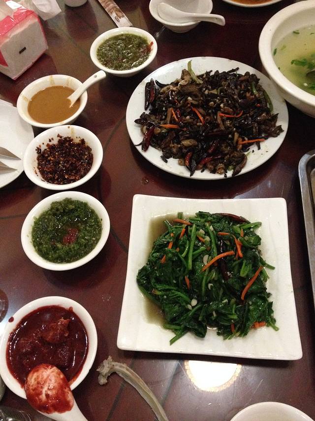 左下是风干肠,左上角那点是风干牛肉,就这个味道还可以,但是巨咸。点菜的时候,称称不让看,必须拿到后厨称。上菜的时候也不告诉你几两,我问服务员,服务员才说这些肉4两,可怎么看也不像4两啊!!店员就不耐烦的说生肉熟算,这是什么道理啊???你制作的时候加一斤调料进去,我是不是还要多花一斤肉的钱?!