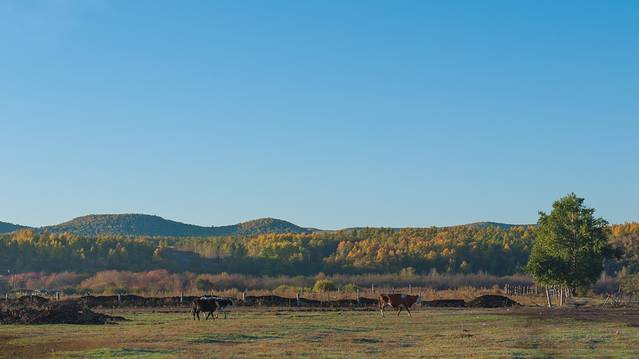 沿途看到一片湿地~旁边地里,农民正忙着收土豆。这边土豆都是红色的皮,炒着吃特别好吃~~炖着吃也很容易煮烂~~~因此还买了一袋子土豆回大连,哈哈