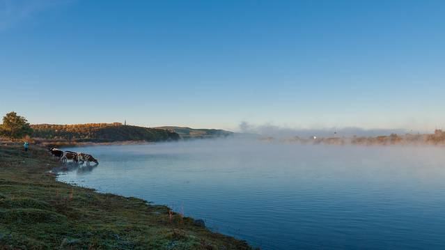 早上不到6点,和老公就起床往河边走。我觉得没必要天不亮就去河边等,真的太冷了。