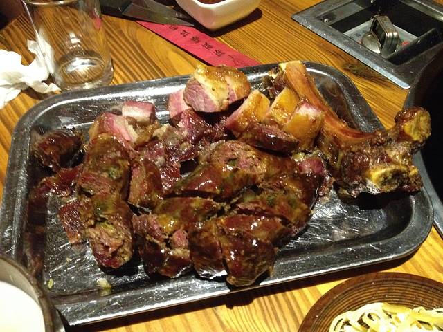 当晚吃的蒙祥原烤肉(去之前在大众点评上搜的,口碑很好),烤羊腿、牛肉馅饼、俄式超级大串,洋洋好吃!吐血推荐!!