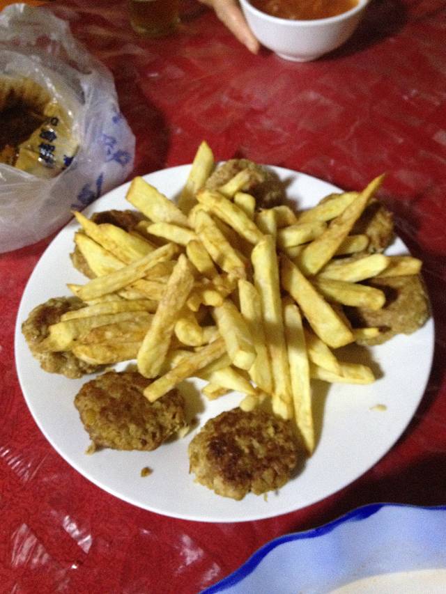 俄餐,名字没记住,就是薯条和汉堡牛肉饼。不过老公超爱吃这个,回来以后还念念不忘的。