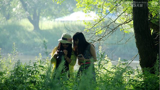 赶上个MM在拍美景,我就把她拍下来。螳螂捕蝉黄雀在后