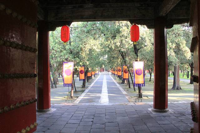 曲阜孔庙,是祭祀中国春秋时期的著名思想家和教育家孔子的本庙,位于孔子故里、山东曲阜城内,又称“阙里至圣庙”,始建于鲁哀公十七年(公元前478年),历代增修扩建,经两千四百余年而祭祀不绝,是中国渊源最古、历史最长的一组建筑物,也是海内外数千座孔庙的先河与范本,与相邻的孔府、城北的孔林合称“三孔”。