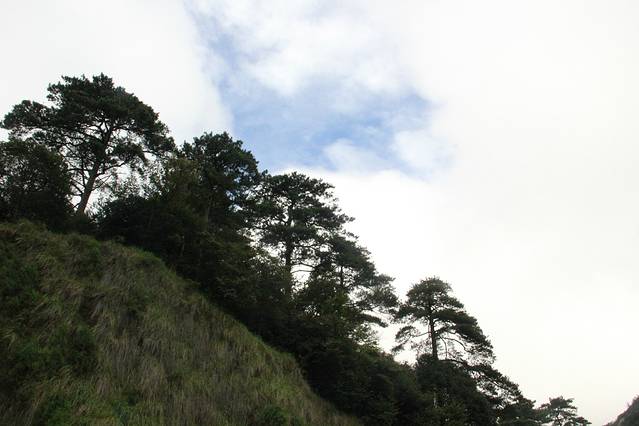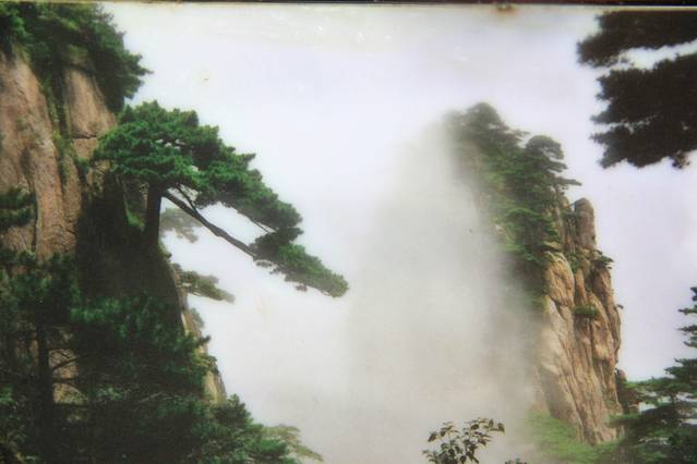 一面长的松树,黄山的特色。几乎黄山的松树都是这个样子。这和地理和气候有关。