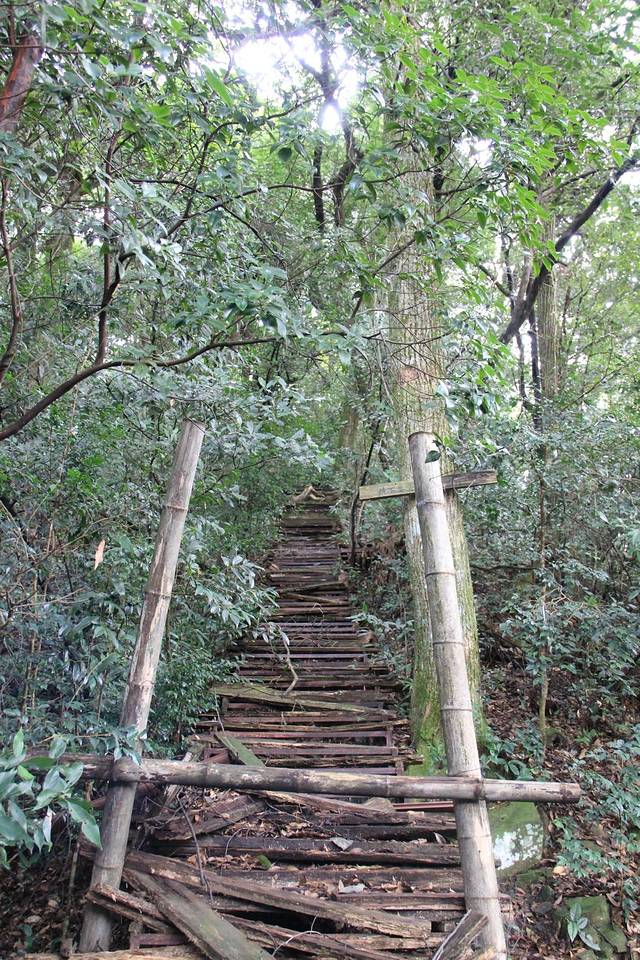 山上有很多这种古道,因为是用木头搭建,所以年数长了会有损坏。
