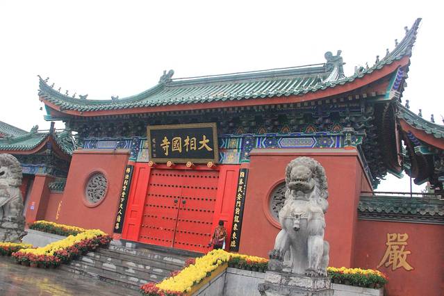 大相国寺,是中国著名的佛教寺院,始建于北齐天保六年(555年),唐代延和元年(712年),唐睿宗因纪念其由相王登上皇位,赐名大相国寺。北宋时期,相国寺深得皇家尊崇,多次扩建,是京城最大的寺院和全国佛教活动中心。后因战乱水患而损毁。清康熙十年(1671年)重修。现保存有天王殿、大雄宝殿、八角琉璃殿、藏经楼、千手千眼佛等殿宇古迹。1992年8月恢复佛事活动,复建钟、鼓楼等建筑。整座寺院布局严谨,巍峨壮观。