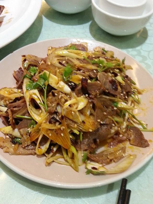 回到了住的地方,找了个小餐馆,点了两个菜,简单的吃了点,这是拌羊肉。