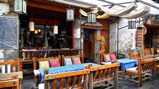 当天下午我们游览了四方街,品小吃,酒吧街,充分感受了世界文化遗产实至名归。这里无论从音乐,书法,庭院式客栈的风格、饮食文化、茶文化等等无不透露出深厚的文化底蕴。当晚在客运站对面的别墅宾馆“清筝月”下榻(标间80元)