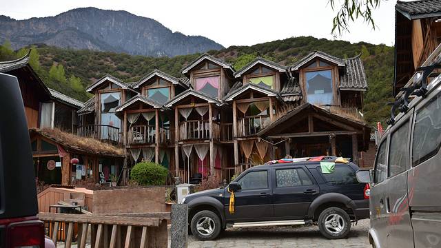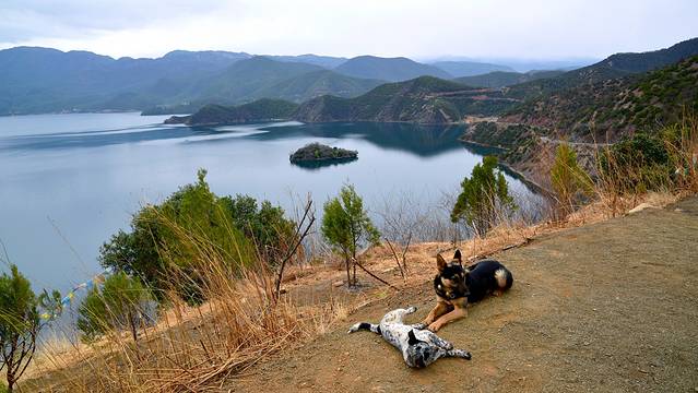 4月9日早8:00乘长途车去滇川交界泸沽湖,由于西面的公路在修路,我们走东面的老道,中间有一段山路较险,不得不倒车两次(一台大车倒两辆小车在进入宁蒗之前又倒回一台大车),车费从75元涨到100元。傍晚抵达洛水村(大洛水)。鹤影和静凝花开两位女士搭车去了里格村(20元一位),我们两个男士负重15kg徒步2.5小时与他们会合。大洛水距里格距离号称8公里,据司机师傅介绍因为是盘山公路,实际距离12公里,我们原来想一个半小时到达,结果多用了一小时。我们住在一家浙江人开的“江南记忆旅馆”,当地因为没到旅游旺季,所以住宿还算便宜,讲价每间80元。在附近饭店简单吃了晚饭(价格较贵,对看不出食材的菜名要问清楚)早早休息。有好奇心的朋友可以选择摩梭人百姓家住宿,品尝摩梭人家的特色饮食,但是摩梭人的大菜“猪膘肉”不吃也罢,当地人说过去没什么吃的,用猪膘肉解馋,其实很难吃的。如果要是去的话,最好打听好,别犯什么禁忌。
