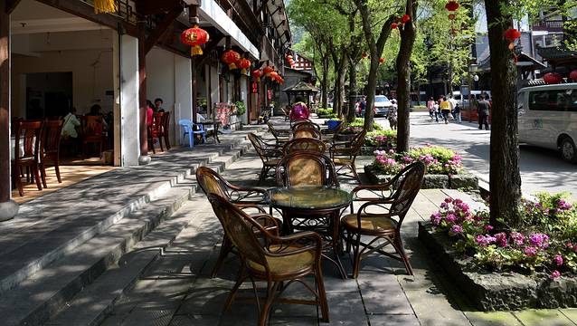 4月14日清早起床在周边继续溜达,拍照。后来打听去重庆的班车是10:30,大刚下山时间来不及,后来发生一些变故(蒙后说明)当晚去高铁站乘城际列车返回成都东,转乘地铁至市中心天府广场下车,此时已经21:30了,我们辗转来到人民南路梨花街,找到一家200元以下的宾馆吉安酒店,标间188元,办好住宿,我们下楼吃晚饭,在附近吃了海味混沌,麻辣面,上楼洗澡睡觉。
