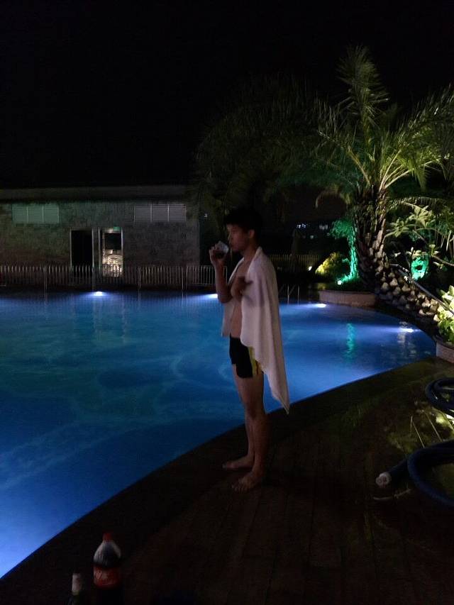 晚上拿房卡去酒店的泳池游泳,附近没有夜生活。