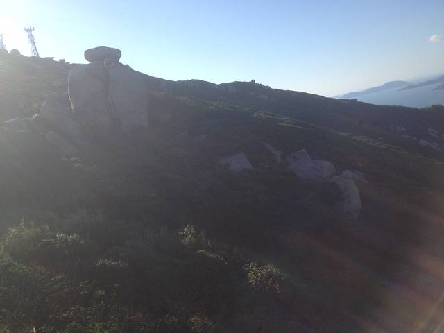 待我怯怯地下来之际来了一个小哥背着个包包外塞着绑着个滑板..我告诫他这里很危险的下边就是悬崖,他说没事的我OK,然后就丝毫没有畏惧直接直着身子上了这块象鼻石。