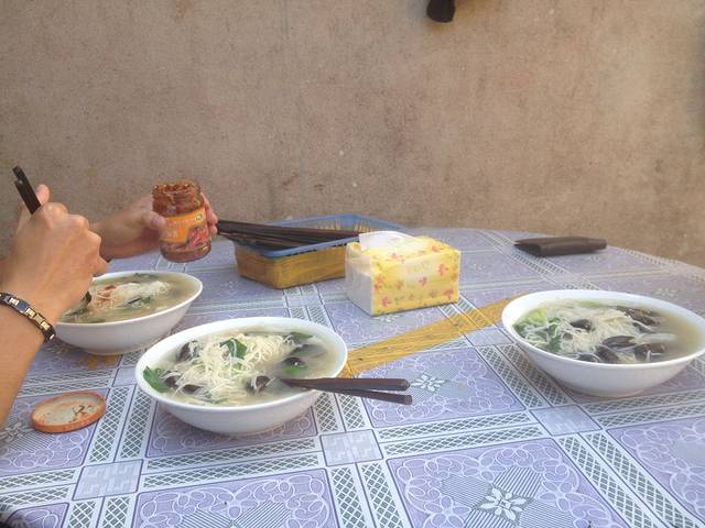 出门觅食还想搓一顿海鲜的,结果发现家家户户提供的饭食几乎都一个价 菜20+,海鲜面25,鱼虾等海鲜咱就拉倒了吧,毕竟学生出来一趟不容易咋吃得起。周旋一圈,还是在那阿姨家吃的饭,三碗面算我们50块也算是良心价了。