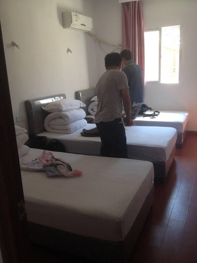 我们跟着一位阿姨一路还价一路欣赏景色带着兴奋去了她家。一番讲价她看我们学生出行不易3个人算了100.整洁干净楼下有卫生间有电视空调全岛无wifi也没好挑剔了吧。