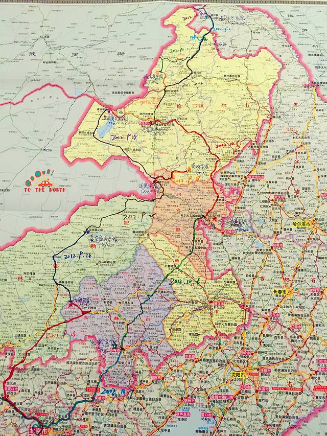 去程:北京—克什克腾—达里诺尔湖—锡林浩特—乌里雅斯太—阿尔山—柴河—满洲里—额尔古纳—恩和—室韦—莫尔道嘎—满归—漠河—北极村