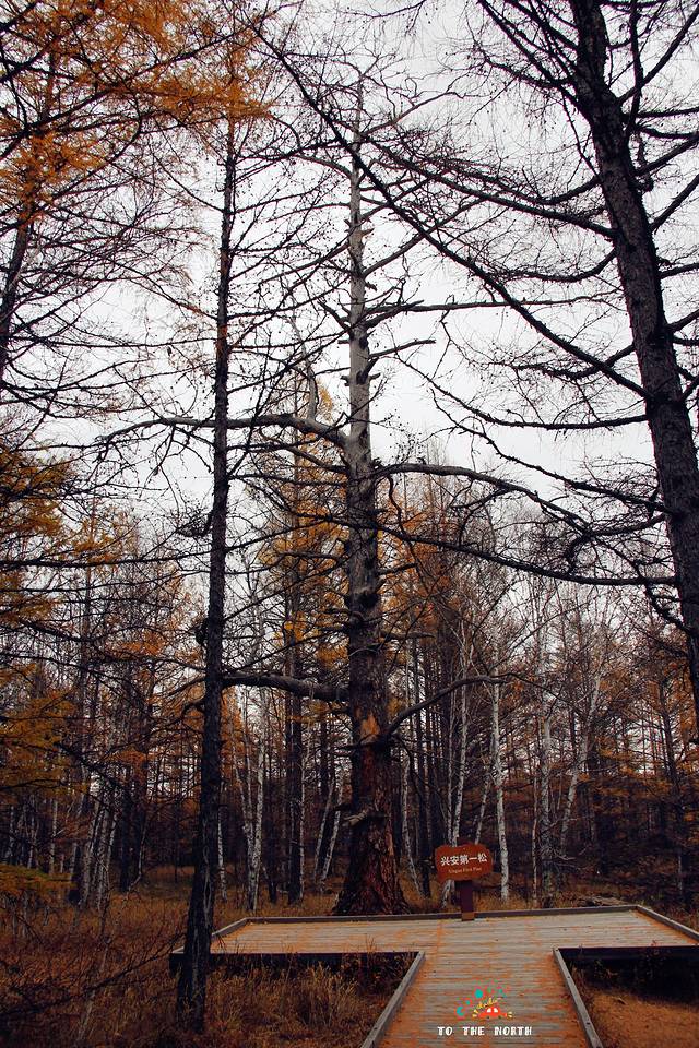 中间的这颗树,被称为“兴安第一松”。找到它并且给他命名的人也怪不容易的。