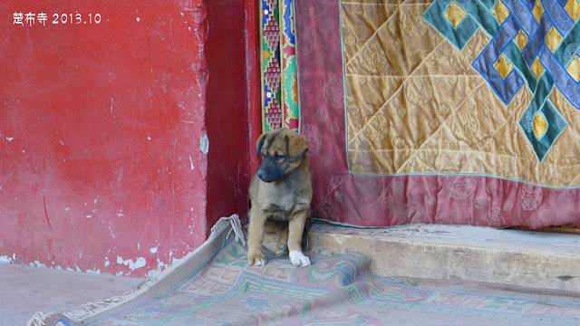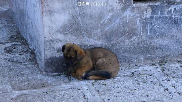 在大殿门口看到的小小狗 天还冷 它小小的 感觉还在发抖