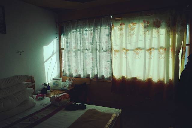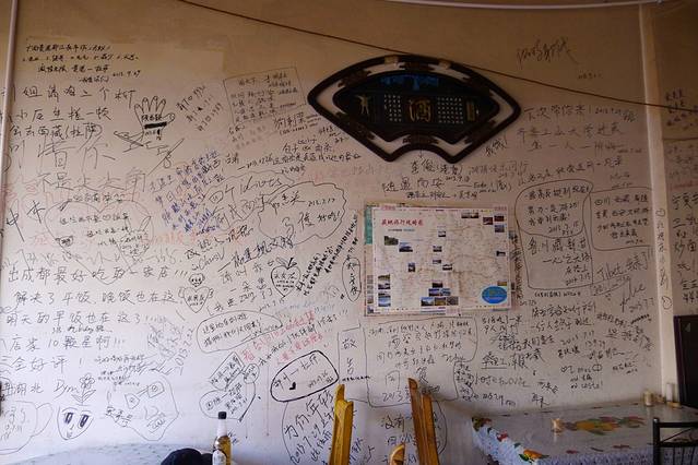 住:去之前打电话问了这几家:1. 归去来,米粒罗:13988736161;2. 守望6740,三毛:13988798098;3. 梅里往事,0887-8416617。因为守望的观景房价格最优(400/晚,已经觉得肉疼了好嘛,这基本是抢钱的节奏。不过十一的时候,不提前订还真的很危险。我们住的那天晚上就有驴友因为没地住只好在阳台搭帐篷),就定了这里。归去来价格差不多。梅里往事现在已经平地起了大高楼,远不止当初说的两间小房,就在飞来寺一排屋子的打头,装修基本是地中海小清新风格,我们到的那天去前台问,有空房,但是720元一晚。总之,十一过去想住个观景房还是提前半个月预定吧,还要支付定金。