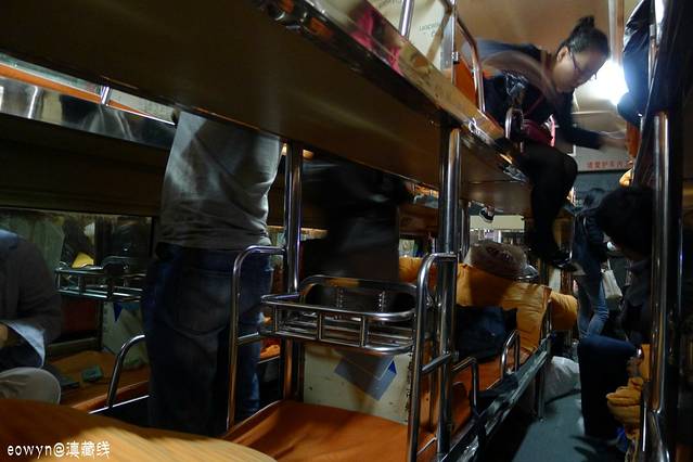 晚上8:30 所有人都爬上这辆有三排板床的卧铺车