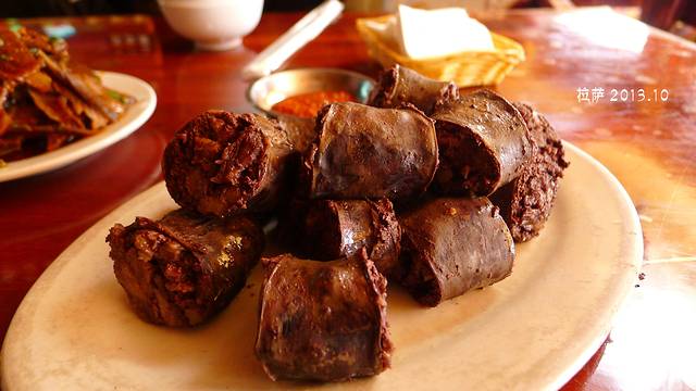 这次小伙伴点了一份血肠。。。结果。。。悲剧了 我吃了一个都没咽下去 这东西保留了动物原始的味道