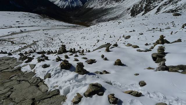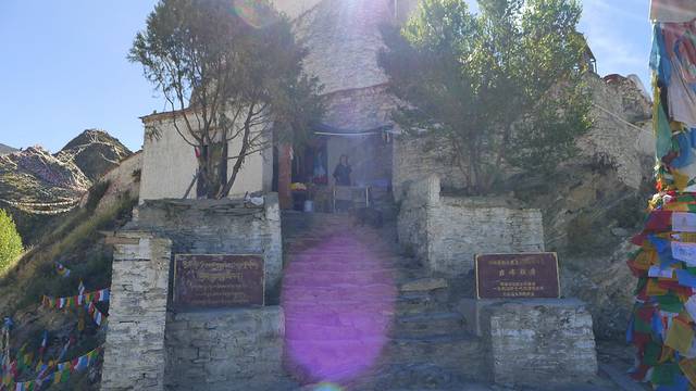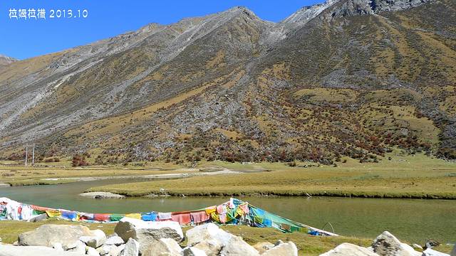 正中那张经幡飘荡的 是在拉姆拉措观湖的山脊上