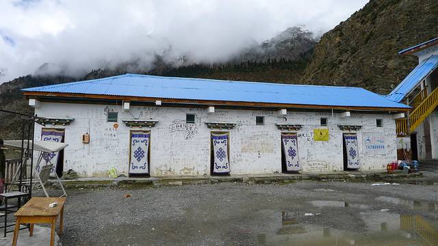 吃:赶路的时候就垫吧点儿。这一天的大餐是在飞来寺的守望旅馆吃牦牛肉火锅,差不多是8,90元左右,两个人一个小锅子就够吃了,送几盘蔬菜,自己买一壶青稞酒能吃的很饱。锅子里煮了薄荷叶,是云南一带的吃法。这个时候的飞来寺晚上真的很冷,吃火锅喝酒还是最应景的。考虑到没有对比,基本就是住哪家就在哪家吃。