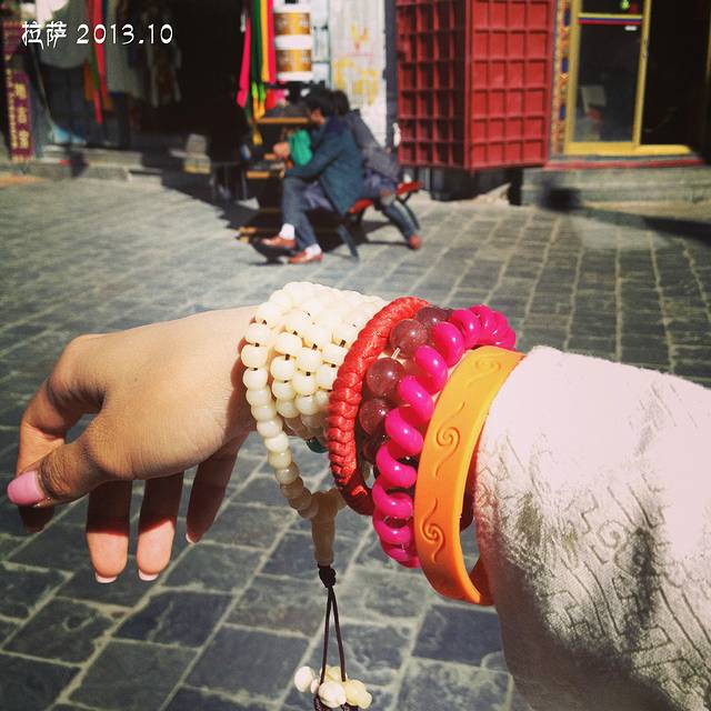 在玛吉阿米的街前 像个土豪似的展示一下这次的两串佛珠吧