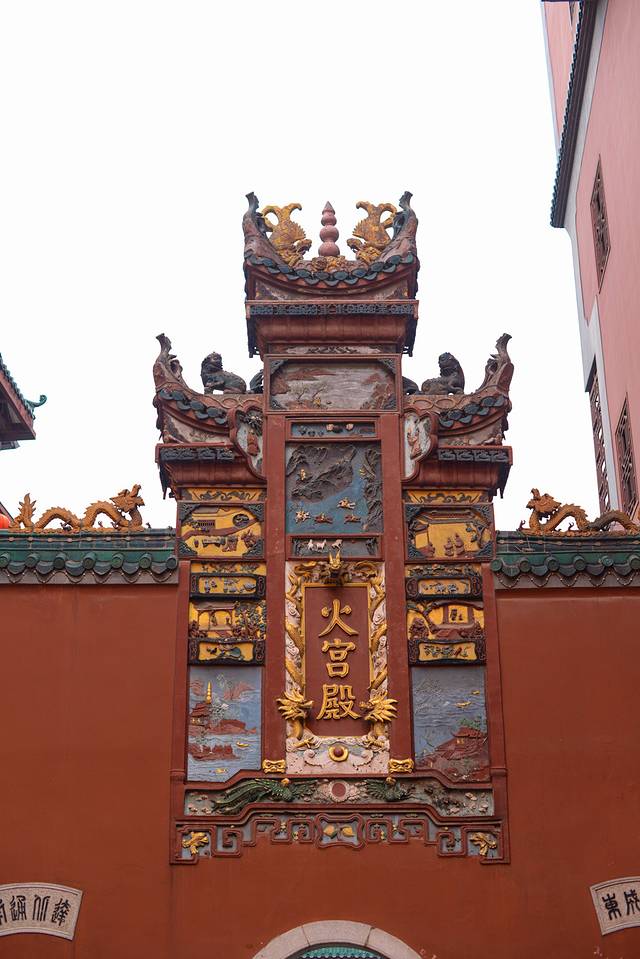 马头墙清水檐脊,琉璃瓦装点,建筑特色上与徽派建筑略同。
