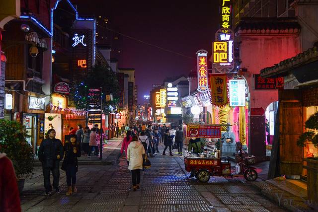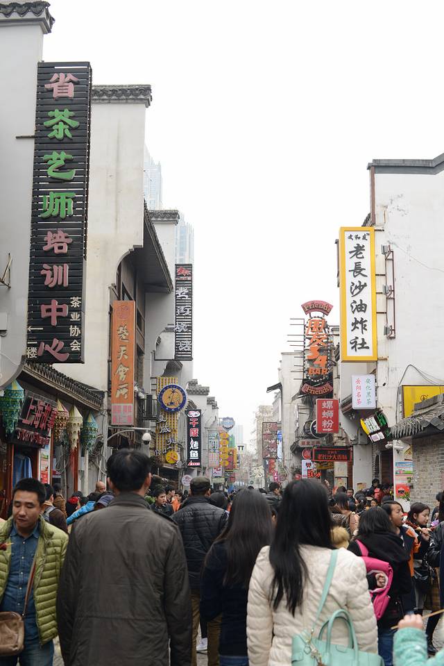 太平街这个地方像极了北京南锣锅巷和烟袋斜街,周边的饮食分布也很像北京地安门东大街和簋街,太平街又叫太平古街,当地人都叫太平街,可我总会一不留神听成“太平间”,罪过罪过。上面的青石板还在,但周边的建筑物已经是没有了老的味道,也许火宫殿院内的戏曲表演还能多多少少带来一些怀旧的情丝。坡子街因为坐落在一条坡道上,所以叫坡子街,它集中了当地特色饮食,加上它又和大的商场比邻,所以多了一些文化混合的味道。这些商业区和步行街全国基本上大同小异,相比较街内的景色我更喜欢它们周边的一些长沙特色。