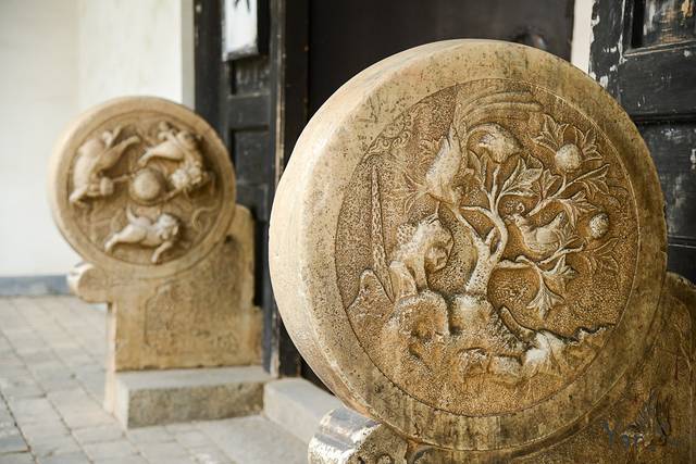 正门前的抱鼓石,上面的图案雕刻的非常饱满,寓意也都非常学院派