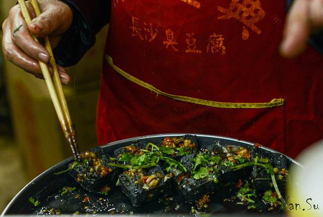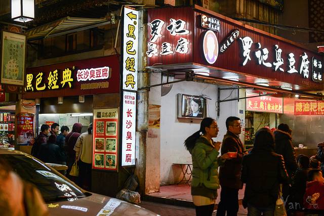 油炸臭豆腐,当地比较有名的是黑色经典和罗记,两个店都是连锁店,步行街上有多家分店,臭豆腐外焦里嫩,并且外面的皮与内部的瓤分开,这样可以加入菜码和汤汁,两家我都尝了一下,黑色经典的相比较起来更加酥脆一些。