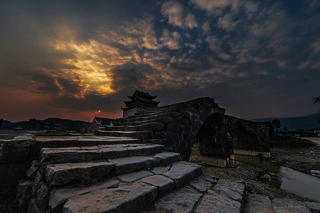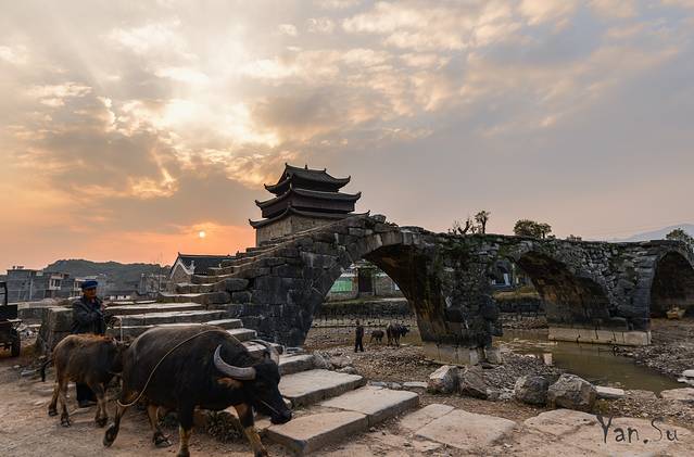 这座古桥有800年的历史,虽说坍塌原因不详,但从坍塌的机构上看,完全是没有用任何水泥粘着,可能连石隼结构也没用,只是按照合理的力学挤压垒建起来的,虽说已经残败,但历经如此长的历史岁月后仍就可以行走并可以抵抗洪水,我不得不佩服古人的智慧和建造工艺。