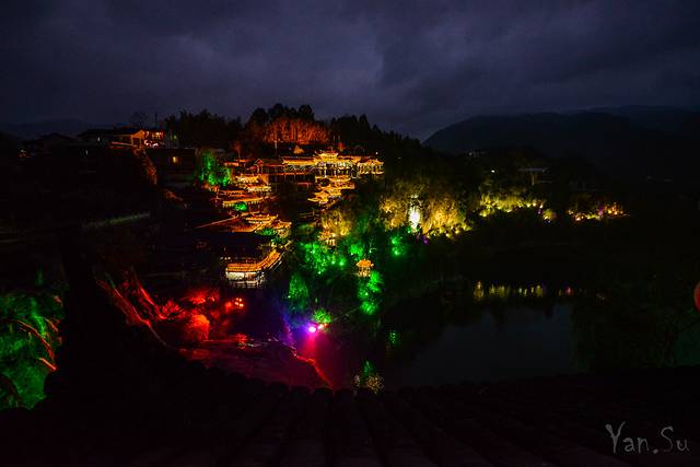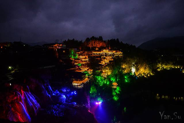 我住在吊脚楼客栈,从客栈的的3楼2楼都可以清楚的看到瀑布和土司府的景色,也可以去邻居家的观景台观看,但是要收费的