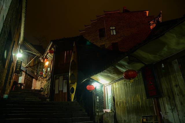 晚上的老街,只有几盏路灯,旺季时或许热闹些吧