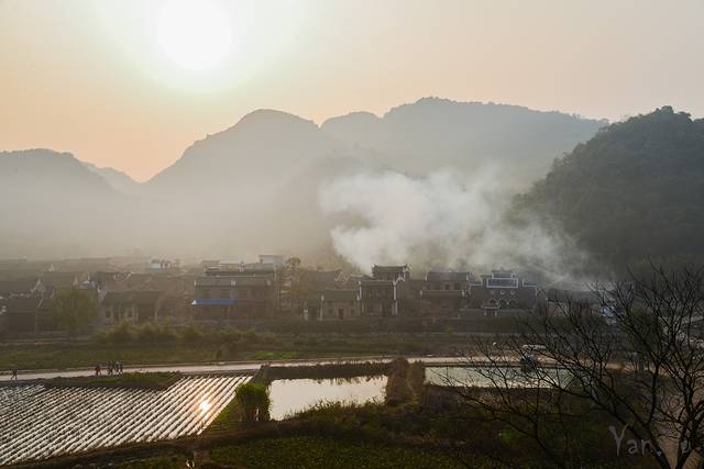 火车从长沙到永州,再到江永,夜宿江永县,第二日老汽车站乘车到古村路边,从下车到进入古村需要步行大约2公里,在进入古村前要穿过村民建造的新房区,两个区域以谢沐河为界。