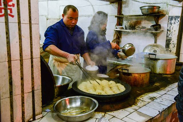 锅饺,说白了就是北方的锅贴,只不过个头稍大,皮更厚,有些当地人喜欢吃饺子皮更加焦糊的那种,吃锅饺当然要配着辣椒蘸水吃还够地道。