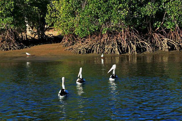 我们有选择的还游览了黄金海岸、阳光海岸、布里斯班的其他一些景点,最多的是不同海湾的不同沙滩,多了连名字都记不得了。其次是主题公园,如华纳电影世界、海洋世界、动物园、植物园、鸟园等,除了主题不同,也没有什么能够留下深刻印象的东西。倒是天堂农场的牧羊犬表演和动物园的彩虹鹦鹉有些特色。另外游船河也不错,我们乘坐了两次。一次是坐水陆两用车从黄金海岸内河的豪宅区到海洋世界,一次是坐游船去水陆洲抓螃蟹和看塘鹅。除了欣赏美景,前者让我们看到了现代豪宅,后者则让我们体验了乡村生活。我们的五天行程就在这种美景交替、惊喜不断的游览中一瞬而过,留下了美好,留下了遗憾,留下了澳大利亚旅游之都的这个难忘印象,可以说昆士兰就是澳大利亚最美的地方。美在昆士兰。