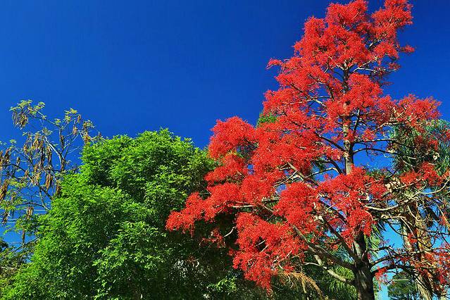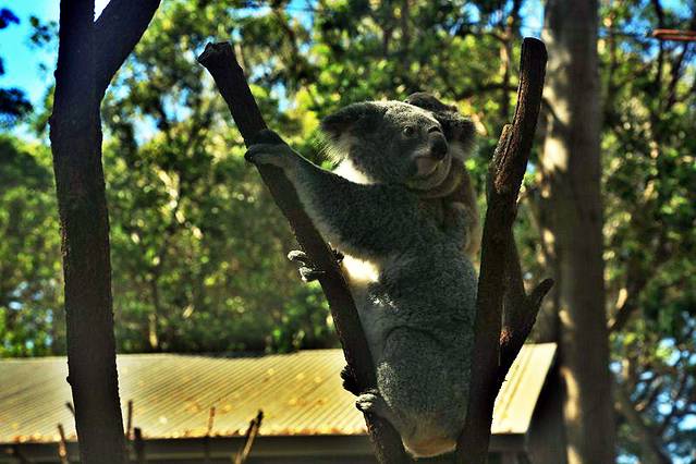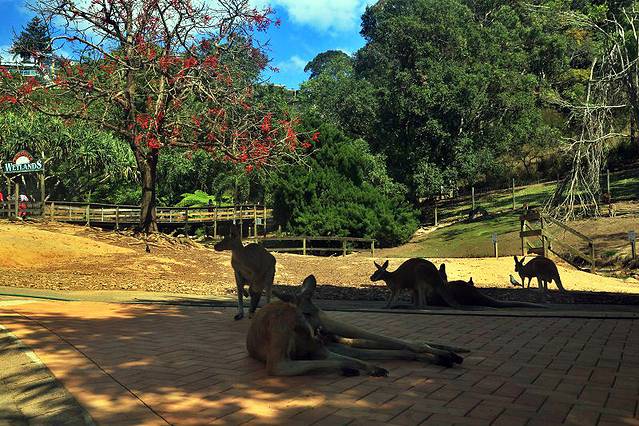 昆士兰(Queensland),女皇之地,是澳大利亚六个州中的第二大州,这里不仅自然景色美丽,物产也非常丰富。澳洲蔗糖的95%都出自这里,牛肉产量全澳之冠,同时还盛产葡萄酒,最副盛名的还是它众多的旅游名号,什么礁石王国、冲浪者天堂、主题公园之都...,其中最响亮的还是阳光之州。一年中有超过300天的太阳天,这恐怕在全世界都是罕见的。这里的亚热带季风气候为它提供了这种阳光普照、空气湿润的好条件,真是个得到上帝特别眷顾的地方。但这里给我印象最深刻的却是那随处可见、无边无际的桉树林。说到桉树这个澳洲特产,生命力顽强,能够深入到地底三十多米吸水,具有很强的排他性,所以在澳洲似乎只有桉树成林,其他树木都被它排斥得少之又少。不知什么时侯我们国家一些地方把它当宝引了进来,现在已是泛滥成灾,把地都毁了。澳洲有“三灾”其中两个就与它有关。一灾是控制不了的火灾。桉树脂所散发的气体是祸根之一,使得这里的火灾一年到头都不断,我们这次就赶上两次只得放弃了几个景点。二灾是控制不了的苍蝇。桉树脂把苍蝇都赶到了城市,不夸张的说,多得连说话都得担心吃了苍蝇。三灾是控制不了的袋鼠。现在澳洲袋鼠已经超过了六千万,几乎两倍于澳洲人口,已经到了无法控制的地步。