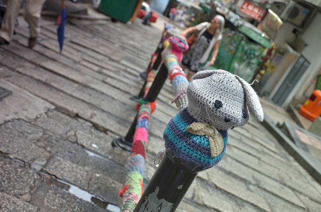 砵典乍街,传说中的石板街,传了漂亮衣服的扶手