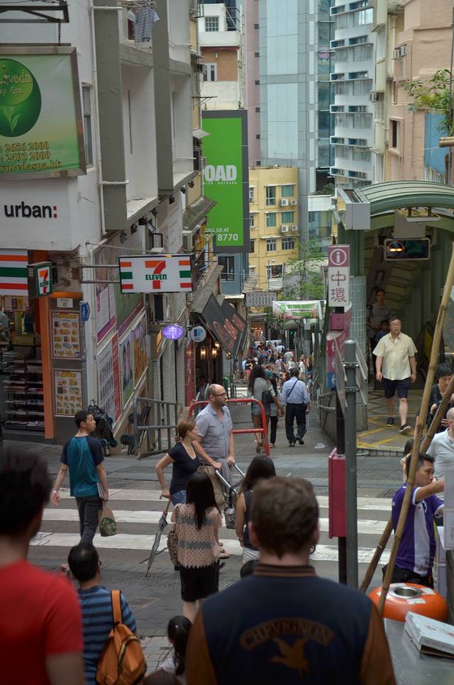 从黄大仙坐地铁到中环站,然后一路奔奔奔,找找找,找到半山扶梯。。。。。。累死老子了